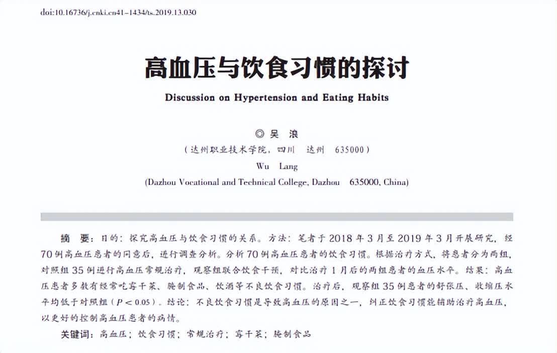 参考贵府[1]吴浪.高血压与饮食习气的酌量[J].当代食物赌钱赚钱官方登录,2019