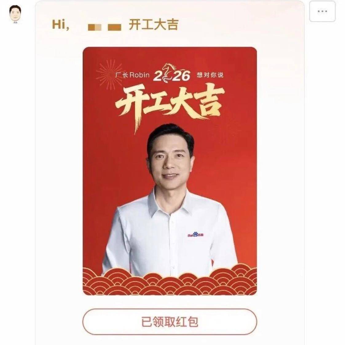 百度创举东说念主李彦宏的数字东说念主,通过责任软件“如流”的行状号,向整体职工发送定制祝颂及开工红包,实习生也有份。百度这次披发开工红包的金额,在365元、588元、666元、888元、2026元不等,职工最高不错得到2026元的开工红包,实习生则可得到188元的开工红包。百度这次开工红包金额跟在任年限无关,而是系统立工夫派。值得防备的是,此前,百度并莫得在春节假期适度后披发开工红包的习气。