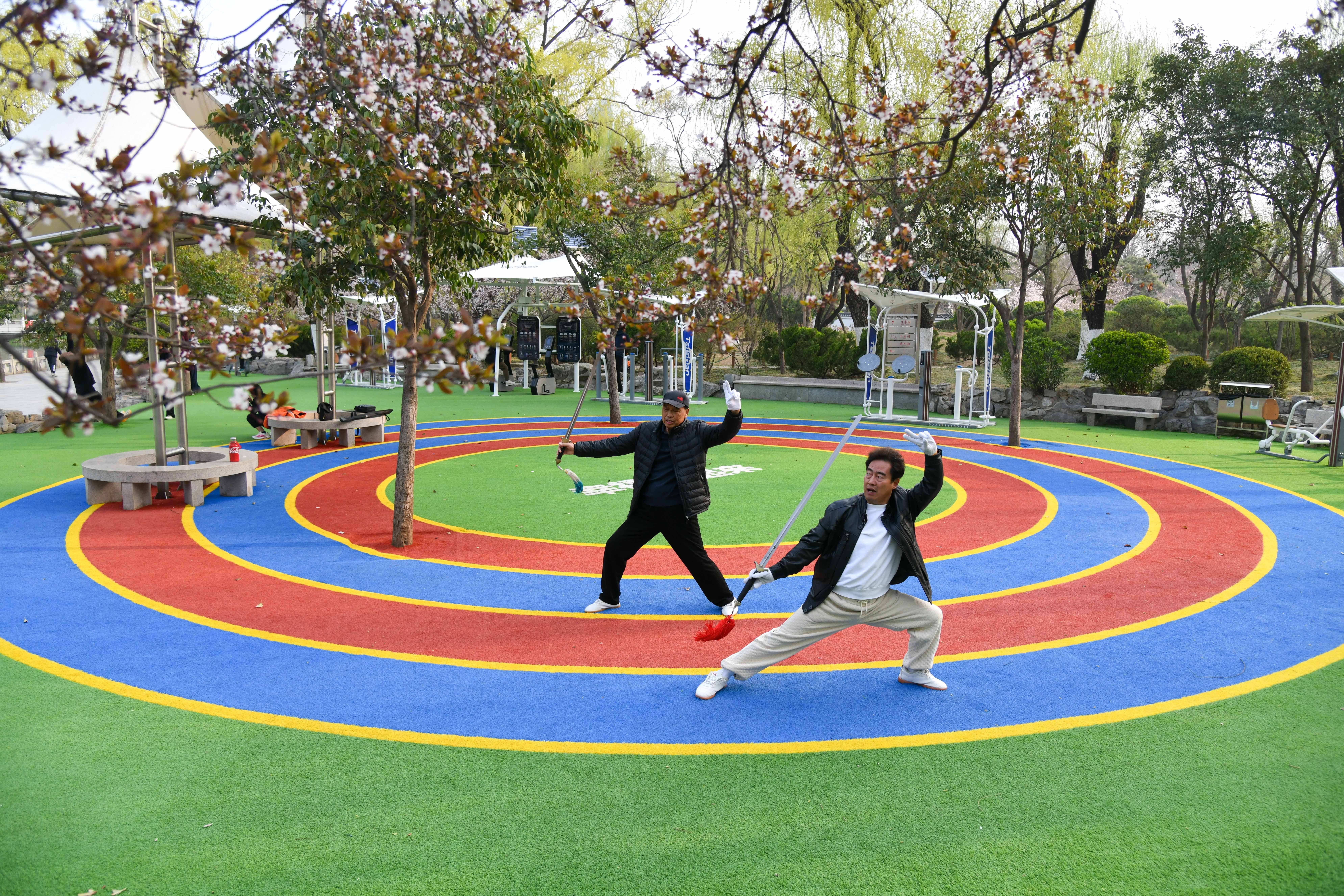 济南泉城公园内赌钱赚钱官方登录,健身艳羡者在全龄智能健身区锻真金不怕火太极剑(3月22日摄)。新华社记者 朱峥 摄