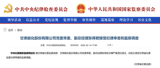 2月14日,中央纪委国度监委官网通报:甘肃能化股份有限公司党委常委、副总司理张得君涉嫌严重违规违警,当今慎重受甘肃省纪委监委递次审查和监察拜访。