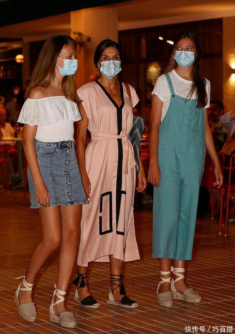 不管是莱蒂皆亚王后已经两位公主,她们度假时的穿搭多为基础平价款,一二百元惩办整套造型是常有的事,百元连衣裙上身亲民又体面。