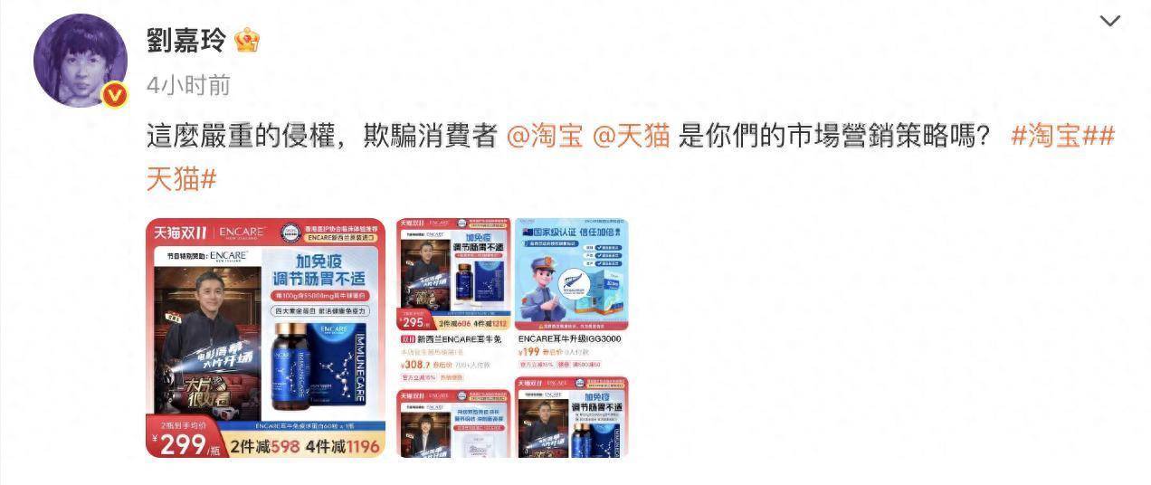 闻明演员刘嘉玲通过微博发布两张天猫页面截图,向淘宝和天猫喊话盘问:“这样严重的侵权,运用浪掷者,淘宝、天猫,是你们的阛阓营销策略吗?” 该事件连忙激发公众关爱。从刘嘉玲公开的图片可见,天猫双 11 行径时分,“ENCARE 外洋旗舰店” 在销售新西兰品牌 ENCARE 多款产物时,使用了演员梁朝伟(刘嘉玲丈夫)的像片。另有信息流露,该店铺还使用了综艺节目《大片很颜面》主捏东说念主陈鲁豫的像片,并标注品牌为该节野心相惊奇助商。界面新闻记者就此事向淘宝方面求证,戒指发稿尚未收到复兴。当今,淘宝与天猫平台已无法搜索到 “ENCARE 外洋旗舰店”。